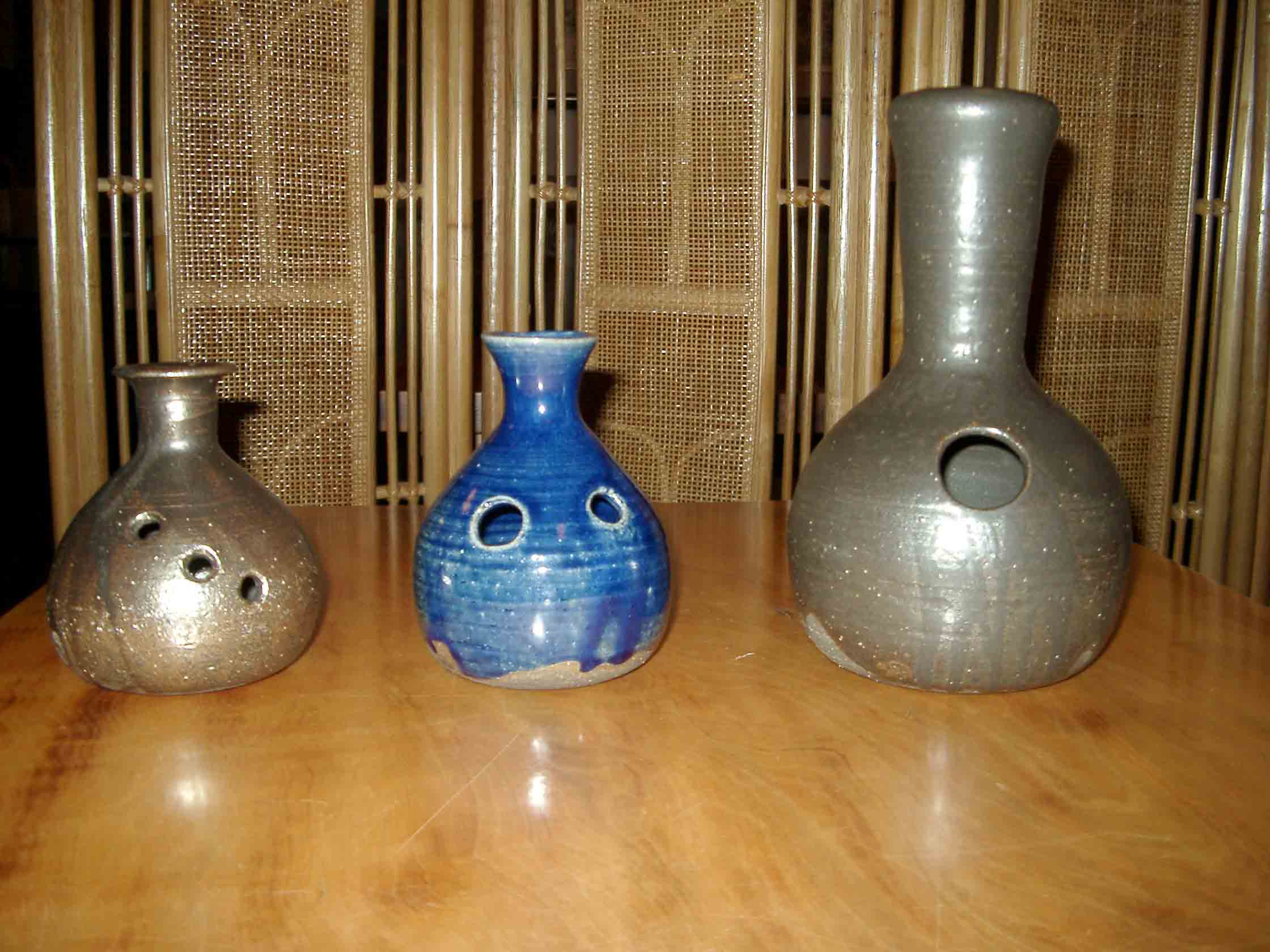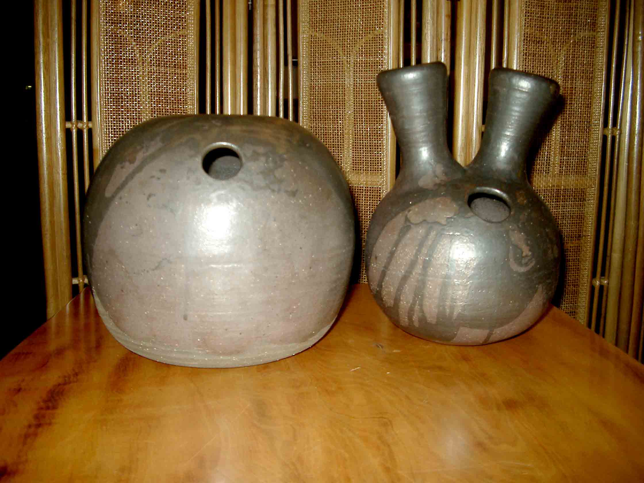 These UDUs are MOTOSKE's original UDU. Every his UDU is quite different from traditional UDU. They are the results of his effort to seek the sound as he and his folks like. The other photos are his ceramic works.